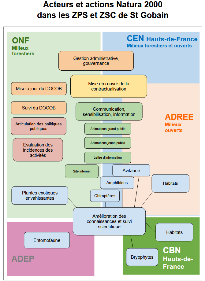 Légende : ADEP = Association Des Entomologistes de Picardie ; ADREE = Association pour le Développement des Recherches et de l’Enseignement sur l’Environnement ; CBN Hauts-de-France = Conservatoire botanique national des Hauts-de-France ; CEN Hauts-de-France = Conservatoire d’espaces naturels des Hauts-de-France ; ONF : Office national des forêts.
